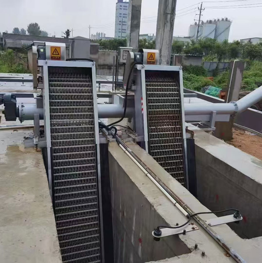 • 清污機系列自動化程度高清除附著在攔污柵上雜物的機械設備。在污物較多的水庫或河道上,為保證水電站或泵站得以安全、正常地運行,常需設置清污機,以便在不停機和不放空水庫的條件下進行清污。回轉齒耙式清污機一般與攔污柵做成整體,回轉齒耙式清污機的清污刮板傳動裝置宜采用回轉式輸送鏈。